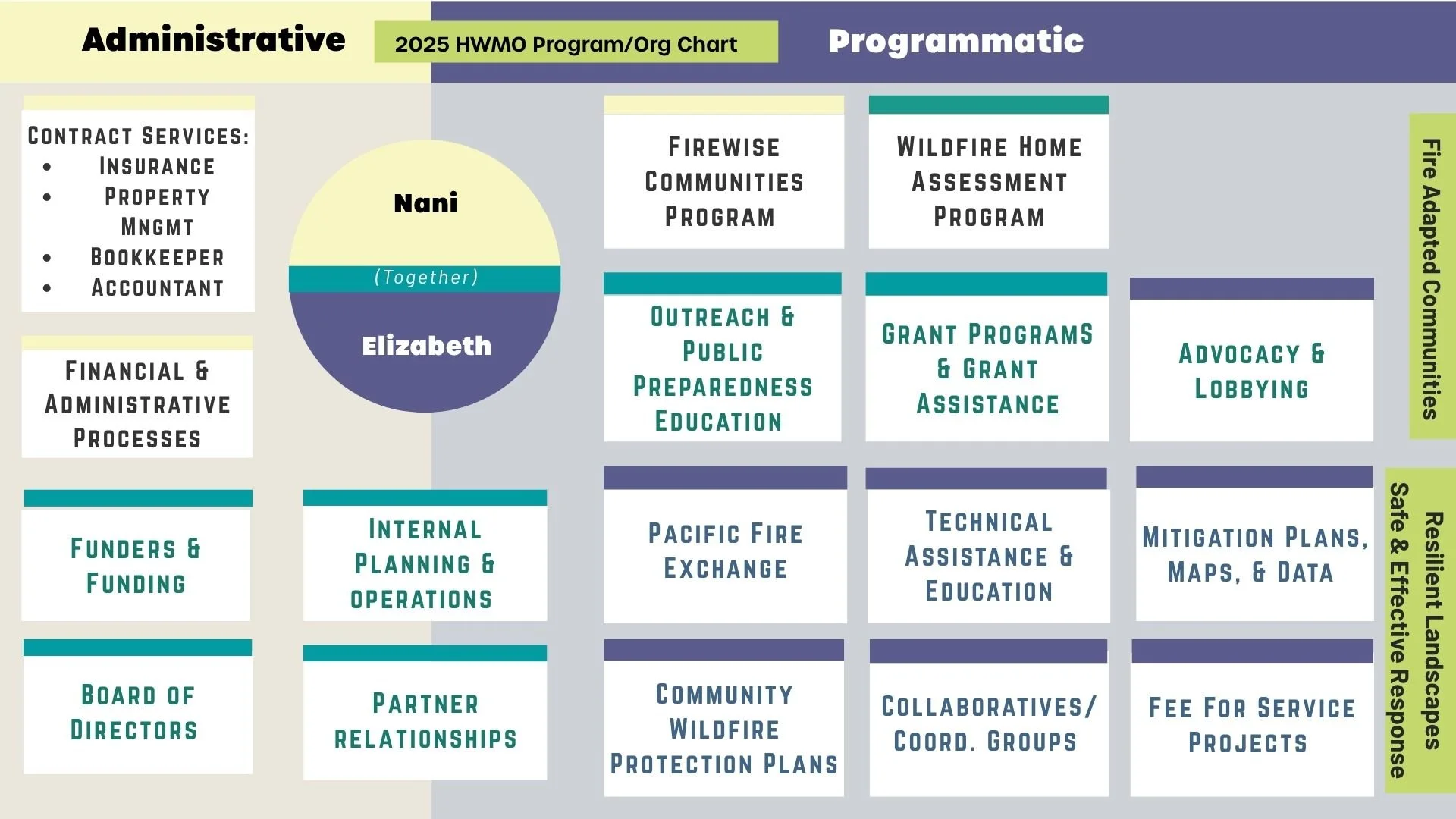 Elizabeth Pickett (pictured left), Co-Executive Director at Hawaiʻi Wildfire Management Organization since 2008, leads wildfire mitigation efforts in Hawaiʻi and the Pacific. She emphasizes collaboration, coordination, and inclusivity for wildfire readiness.